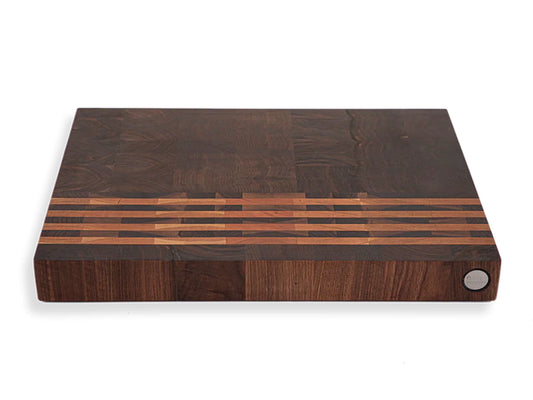En rupture de stockPlanche 20" X 12,5" X 2" - Bois de bout - Noyer et érable - Le Un Huitième