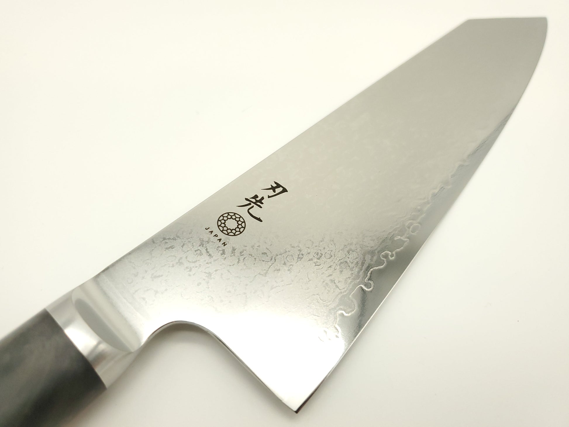 The core of the knife is made of VG-10 stainless steel, one of the most renowned for its edge retention and ease of sharpening.