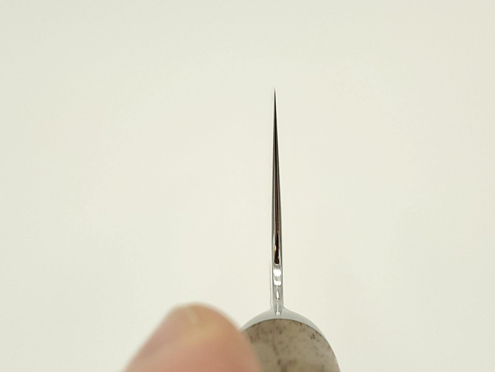 This blade, recently designed by Hazaki Knifes in Montreal, is semi-handcrafted in Japan (small business). The handle is made by a Montreal cabinetmaker. The blade is particularly thin, with a pronounced edge (or secondary angle), making it easier to maintain over time, particularly in terms of thinning. The envelope is composed of 66 layers of low-carbon steel, which facilitates thinning over time. When the Aiguisoir sells a knife, it should come back for maintenance every year for decades to come! That's why L'Aiguisoir is so concerned with the functional aspect of the knives it sells! :-)