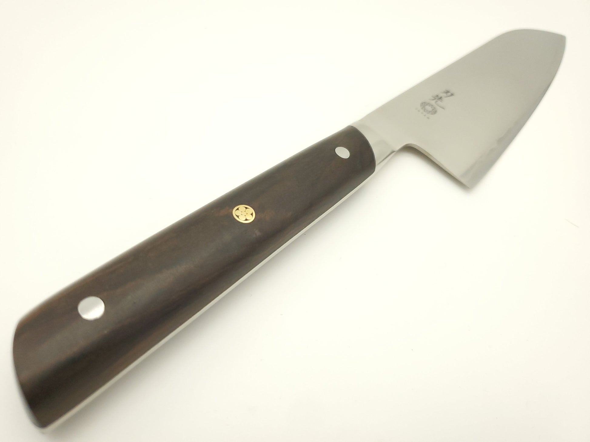 Cette lame, récemment dessinée par l'entreprise Hazaki Knifes à Montréal, est fabriquée de façon semi-artisanale au japon (petite entreprise). Le manche, quant à lui, est fabriqué par un ébéniste de Montréal. La lame est particulièrement fine.